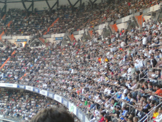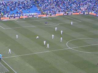 Persze én sokszor magyarul is megszólalatam, mert ha ideges az ember az anyanyelvén jönnek legelőször a nyelvére a szavak. A Madrid hiába dominált, vagy az utolsó passzokba csúszott hiba, vagy túl sokat vártak ( pl.: Kaká Ronaldora...) vagy mindig odaért az utolsó pillanatban egy pamplonai védő és idővel azért a baszkok is látogatást tettek a mi térfelünkre, hogy megint belénk fojtság a szurkolást. A 41. percben Vadócz rúgott egy bombagólt Ikernek. Na ekkorra már mindenki tudta a környékemen, hogy én magyar vagyok, szóval jól összehúztam magam. Persze magyar gyerek meg minden, de én akkor legszívesebben képen töröltem volna, mert elrontotta a játékomat. :D nem sokkal később azonban már mi örülhettünk, mert Granero beadását Marcelo fejelte a kapuba. Az a lökött brazil hajasbaba meg elkezdett integetni a szurkolóknak, hogy hangosabban ünnepeljenek. J Aranyos volt, na. J