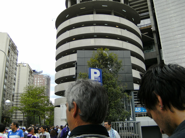 Egy pici pihenés után, 2 és fél órával (!) a meccs kezdete előtt már ott voltam a Bernabéunál, teljes harci díszben. Ekkor már kezdtek gyülekezni az emberek, én pedig kezdtem úgy érezni magam, mintha a paradicsomban járnék. A stadiont körülvevő utcákból mindenhol 1-1 néhol 2-2 sávot lezártak – a Castellana bedugult - , hogy elférjen a 80 ezer madridista. Ameddig a szememe ellátott csak Real Madrid mezes, sálas, sapkás embertömeget láttam. Jól tettem, hogy már annyira korán kimentem, mert így a Concha Espinán, a buszmegálló esőbeállója alatt jó helyet sikerült kifognom, ahonnan reméltem, hogy látom majad, amikor megérkeznek a Srácok a csapatbusszal. Addig is, amíg vártuk a Csapatot a tömegben szétszórodott ultrák különféle szurkolói dalokra és rigmusokra gyújtottak, amit szépen lassan az emberek nagy része is velük együtt kezdett kántálni. „ Real Madrid mi buen amigo” (Real Madrid az én jó barátom), „Puta Barca! Puta Cataluña!” (K*csög Barca! K*csög Katalónia!) , a Real Madrid himnusza, „ Cómo no te voy a querer” (Hogy lehet nem szeretni/akarni) és az „ A por ellos” (ennek a címe becsapós J )volt műsoron váltogatva.